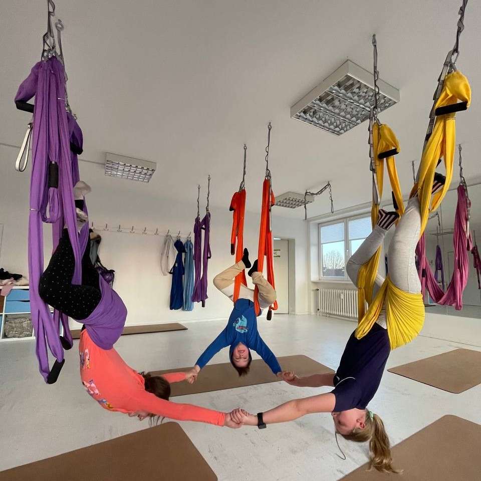 Aerial Yoga für Kinder und Erwachsene: eine Verbindung aus Yoga, Akrobatik und Meditation.